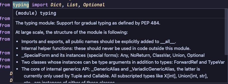 Typing 是 Python 标准库中的一个模块,专门用来支持 Type Hints(类型提示)功能