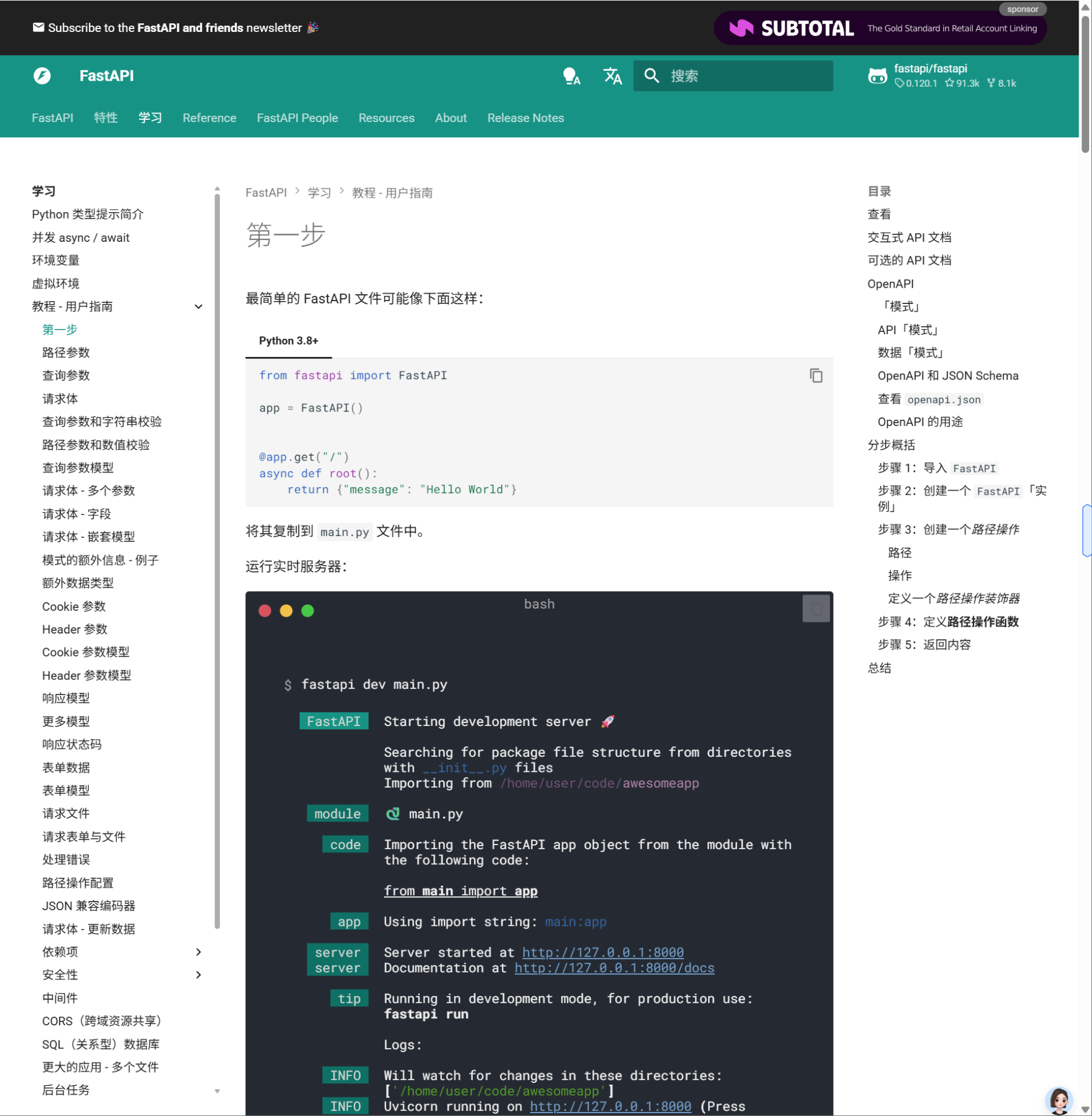 文档: https://fastapi.tiangolo.com