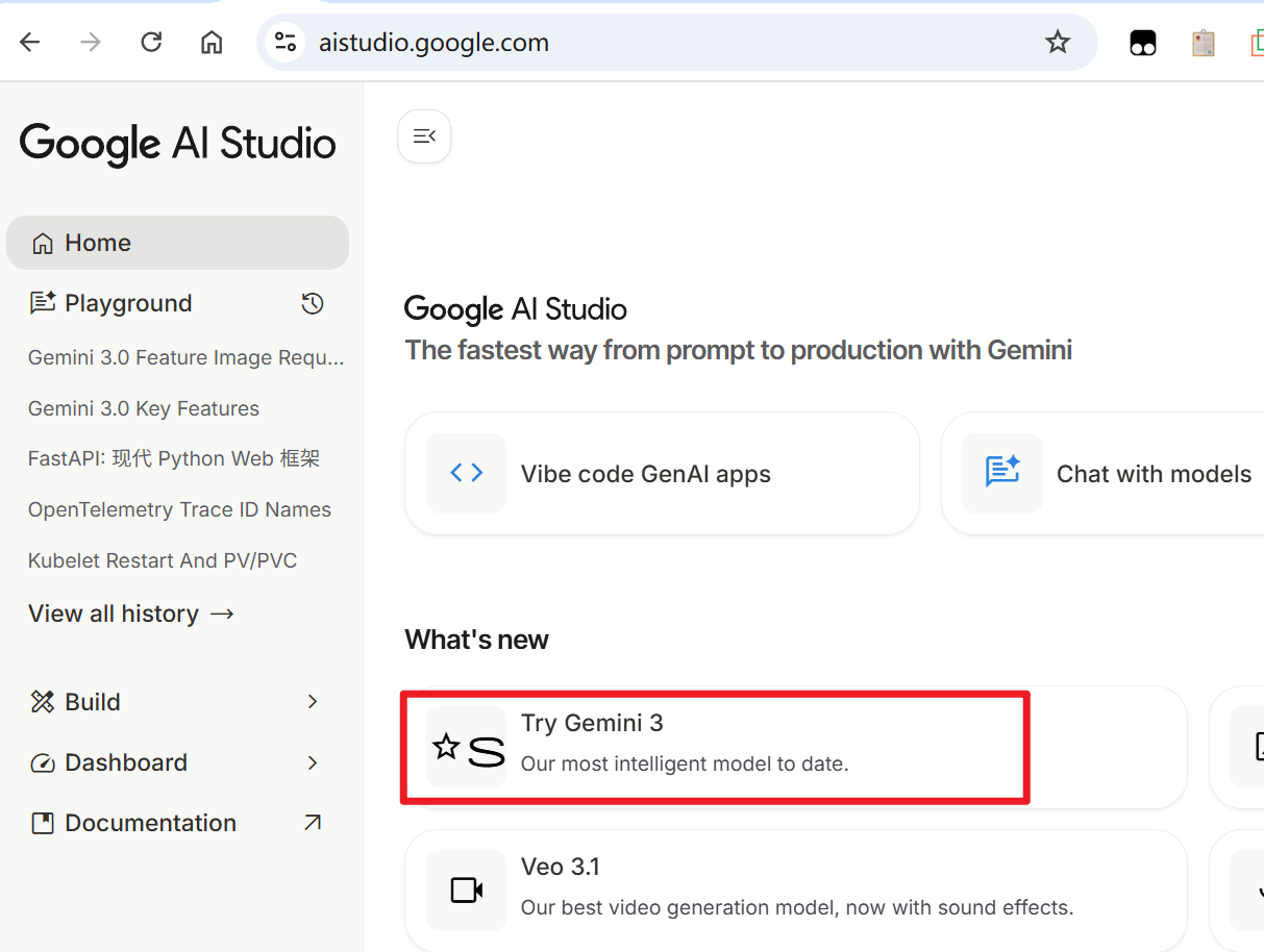 登录谷歌 AI Studio: https://aistudio.google.com/
