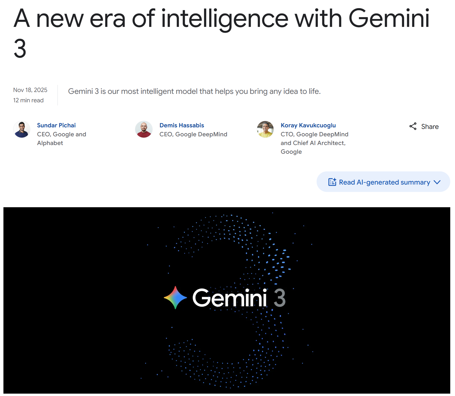 AI宇宙新模型:Google的Gemini3.0震撼发布