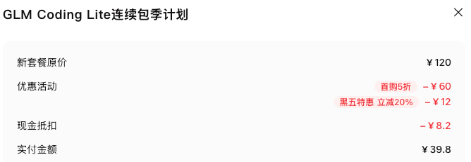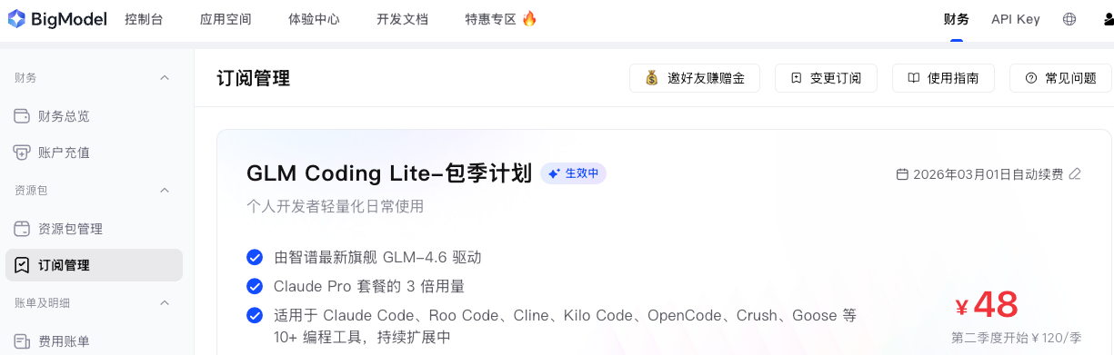 朋友们,我先替大家试试GLM4.6,看看前后端开发使用GLM4.6能够高质量的完成AI编程工作,后续效果等我过一段时间给大家反馈。 目前是黑五优惠时间,我是39.8元的包季度套餐,大家可以付费之后设置提醒,用2周看是否要取消自动续期,避免不合理扣费。