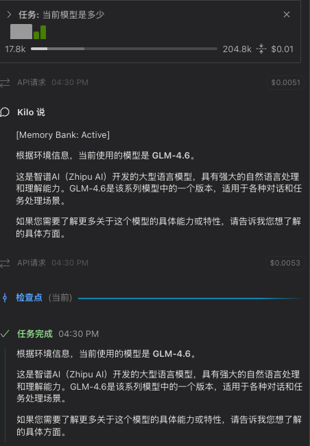 - Model:选择 glm-4.6 或者列表中您想使用的模型