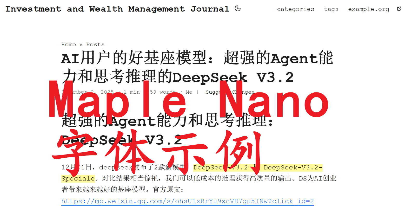 在Hugo自定义字体:MapleMono-NF-CN 字体演示