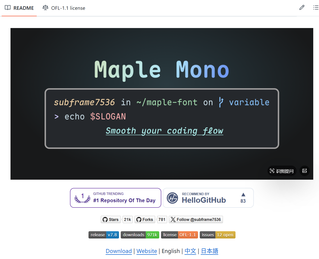 字体配置位于 assets/css/extended/maple-font.css,详细说明请查看同目录下的 README.md 文件。