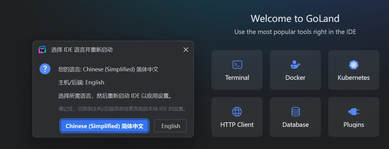 强烈推荐大家使用中文,因为Goland的配置很多,如果不使用中文,初学者会有很多疑惑和麻烦。