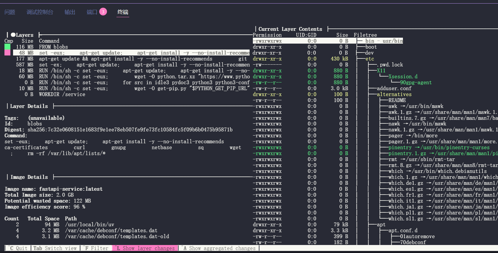 如何优化 docker 镜像体积 | Shall We Code? docker 自带的 docker history 命令,该命令可以展示所有镜像层的创建时间、指令以及体积等较为基础的信息。 第三方的 dive 工具,该工具可以分析镜像层组成,并列出每个镜像层所包含的文件列表,可以很方便地定位到影响镜像体积的构建指令以及具体文件。 在Ubuntu使用snap安装dive即可: wagoodman/dive: A tool for exploring each layer in a docker image