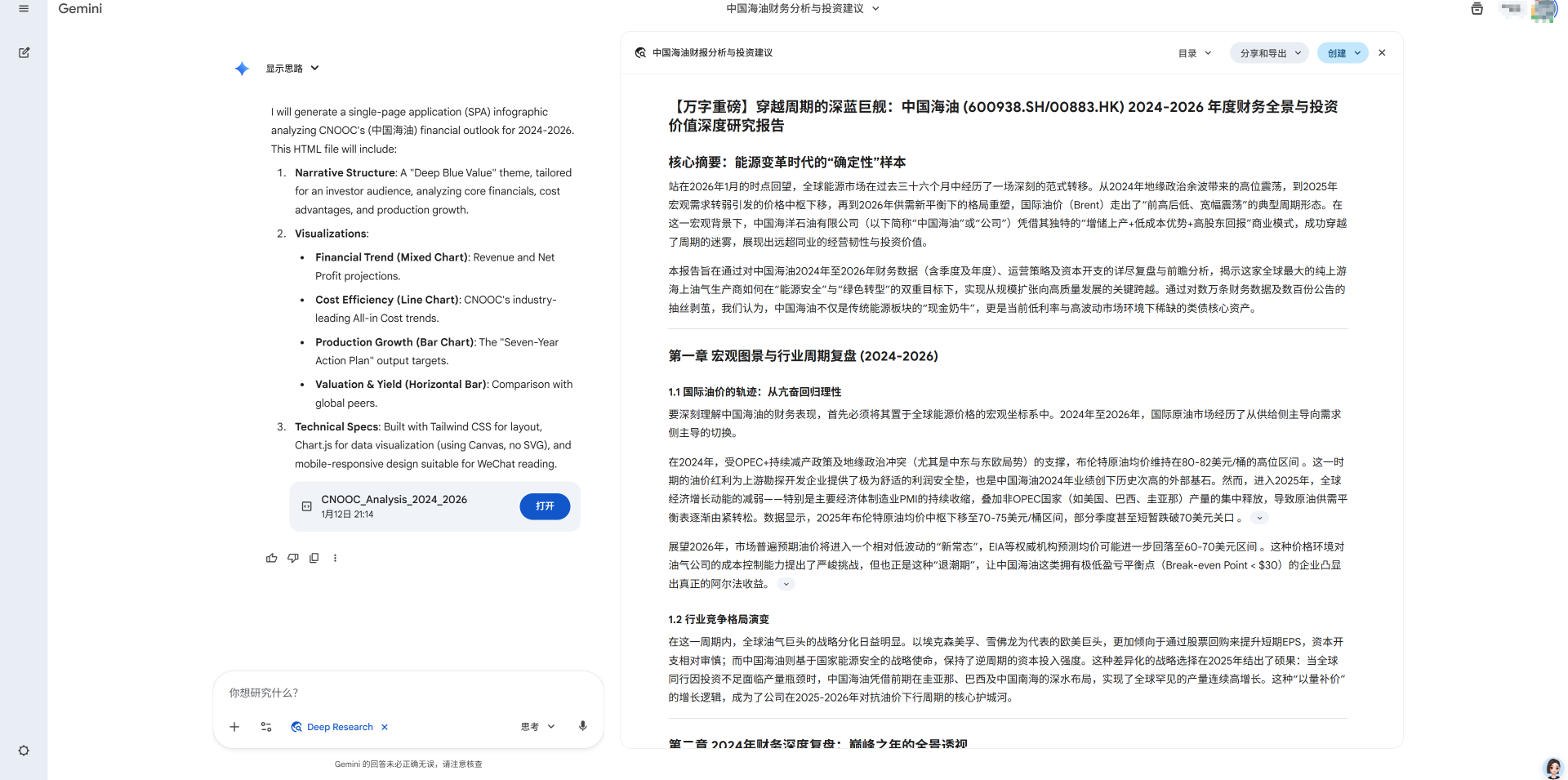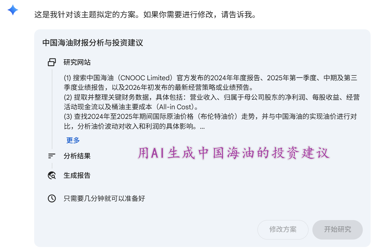人工提问环节:期望AI回答关于“中国海油”的投资主题研究,